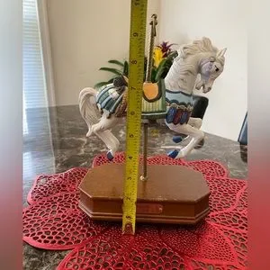 * Some scratches on the base. The horse doesn't move, but the music box works fine.