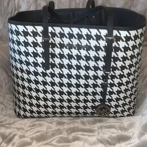 Gorgeous Michael Kors Houndstooth Tote. Saffiano Leather. Excellent Used Condition. Like New. Very Clean and Spacious. Silver Hardware. Dust Bag Included.