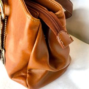 This super cute Madison Studio Brown Leather Shoulder Strap Purse is a must have. It’s small size is perfect for on the go activities. Has a soft smooth leather exterior. Several easy access compartments. Has buttoned expandable ends to increase capacity of purse. Stylish buckles on the front with zippered compartment on the back. I love this item ❤️.