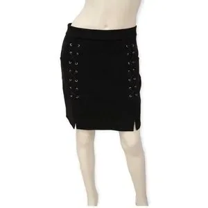 Black Mini lace up skirt, some stretch, has pockets,zippers shut, excellent used condition. Xl Waist 16 length 19
