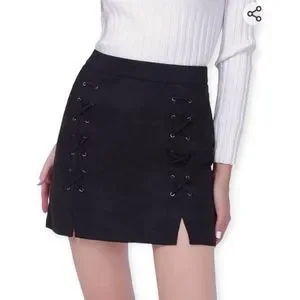 Black Faux Suede Lace Up Mini Skirt XL
