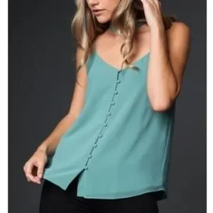 Gorgeous spaghetti strap cami blouse with button detail and mock neck band. I absolutely love this color! ❤️💕