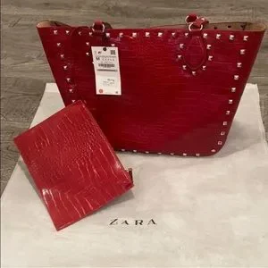 Zara animal embossed studded shopper bag