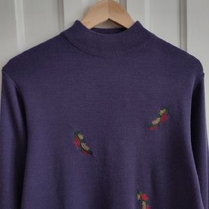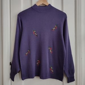 Women's sweater top mock neck wool sweater with beautiful embroidery 😘