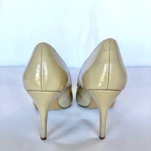 Nine West Patent Leather Heel Shoe Tan Cream Beige Size 7.5 M