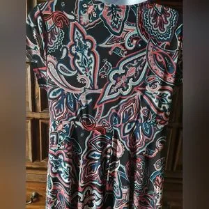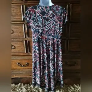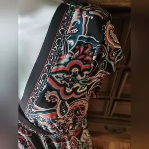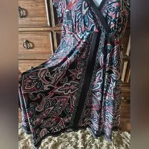 INC Wrap V Neck Cap Sleeve Embellished Paisley Print Knee Length Stretch Size L