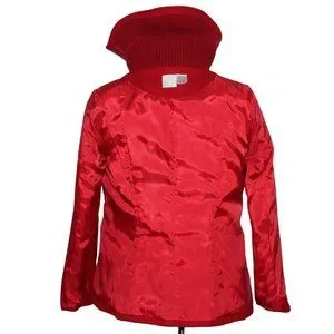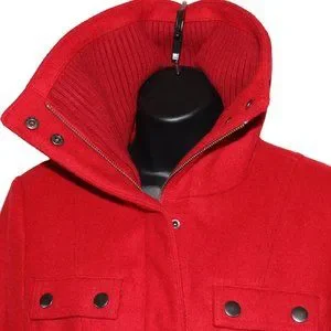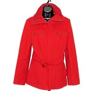La Redoute US 6 UK 10 Red Belted Wool Blend Full Zip Snaps Knit Collar Coat