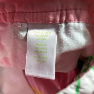 Lilly Pulitzer shorts, size 10. Pretty pink & green floral print! Pockets in front & back, zipper & button front closure. 4.5” inseam. GUC with some fading.
