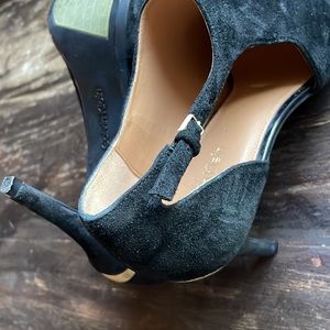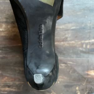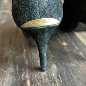 NWOT Calvin Klein size 9 Suede Bootie with gold buckle detail. In like new condition, NWOT, or as department store shelf pull.