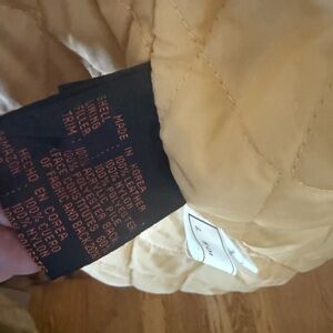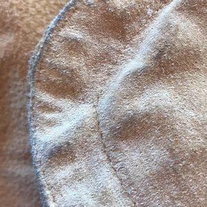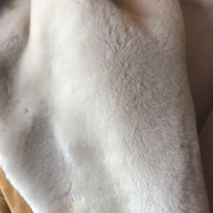 Super warm cute stylish real sheepskin coat has a little sign of wear on the inside of the front must be from my pants sleeves and hood are all good just the edge at the bottom and it’s not obvious unless you know it’s there