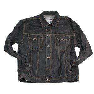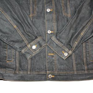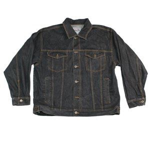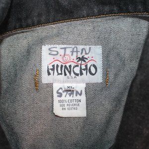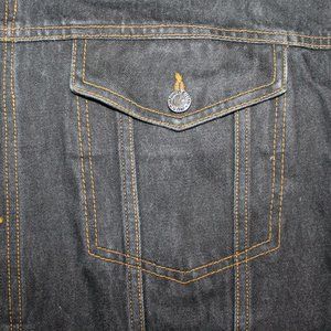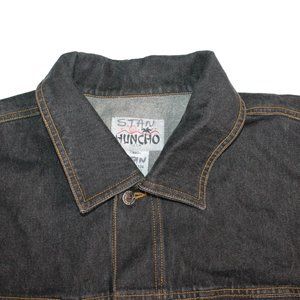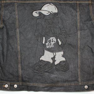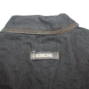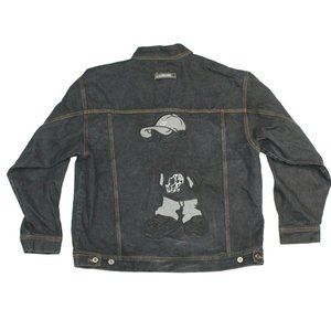 HUNCHO USA XL Black Denim Hip Hop Streetwear Prison Yard Embroidered Jean Jacket