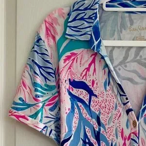 Lilly Pulitzer Polo Style Dress in a vibrant print of white, pinks and blues