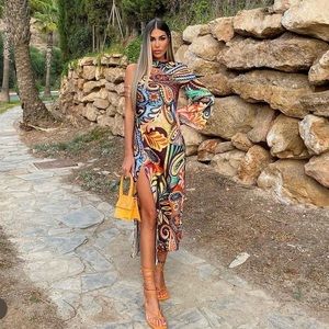 NWT ZARA Asymmetric Sleeve Side Slit Tropical Print Dress Blogger Favorite Small