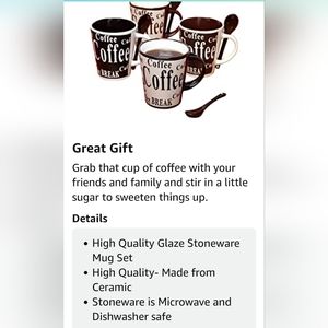 New! Never Used!Mr. Coffee Bareggio Mug and Spoon Set, Café Americano 8pc 13oz.