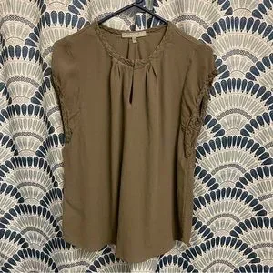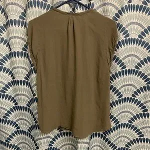 Olive green, brand new without tags. Purchased from Stitch Fix and then decided it doesn’t fit me. Can be worn open at the top or clasped. Lightweight. Smoke free home.