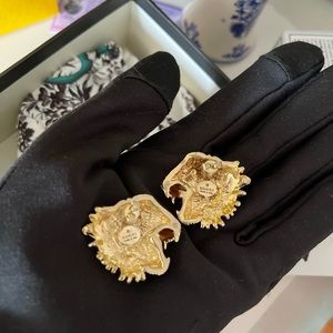 ✨RARE Vintage Gucci Crystal Enamel Rajah Tiger Head Stud Earrings