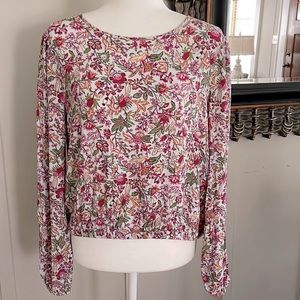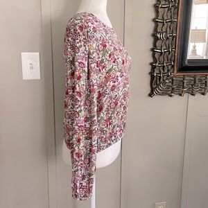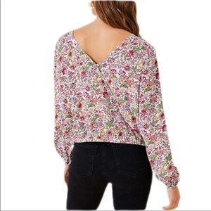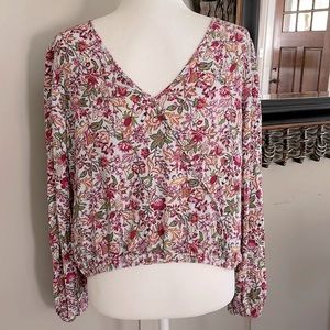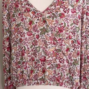 Loft Jungle Wrap V-Back Multicolor Floral Elasticized Hem Top EUC Size Medium