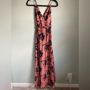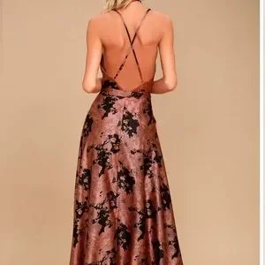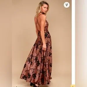 Lulus Tea Gardens Rusty Rose Floral Print Satin Maxi Dress