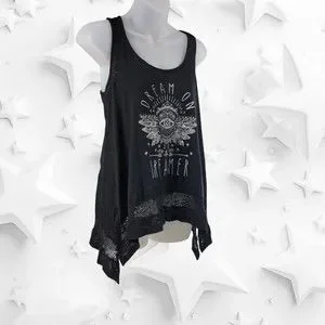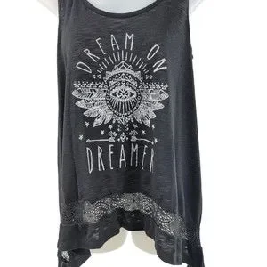 Tunic Tank Top Shirt Junior M 7-9 Dream on Dreamer Sleeveless Scoop Neck Black