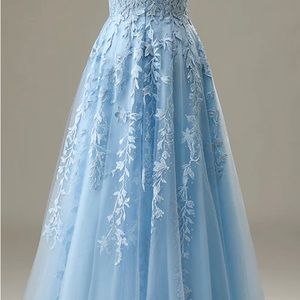 This is a berlinnova prom dress, floor length with spaghetti straps. It’s never been worn or altered. It came in too late so I wasn’t able to wear it. It’s size 14 with multiple layers of frill and mesh. Extremely comfortable. It has little jewels spread all over.