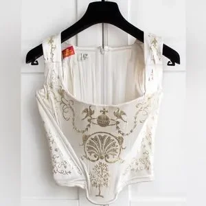 Iconic Vivienne Westwood Vintage F/W 1991 White Gold Boulle Satin 90s Corset Top