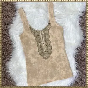 ๐SOLD๐Free People Beaded Secret Heart Tank Top Gold Embellishments Size Small