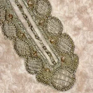 * Gold embellishments at neck
