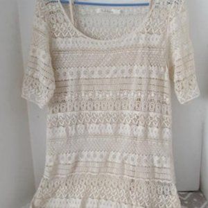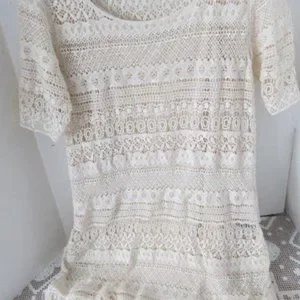 SOLD 2 pc Beautiful Boho Lace Dress Fringe Bottom Dresses Ivory lace bohemian