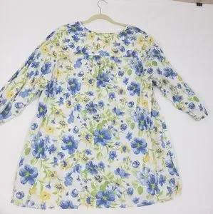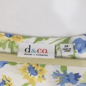 Denim&company womens 2XL Plus size floral print scoop neckline 3/4 elastic hem cinched sleeves blouse