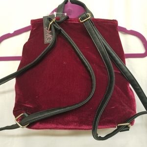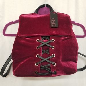 *SOLD* OMG Accessories Burgundy Velvet Lace-up Backpack NWT