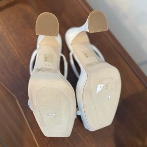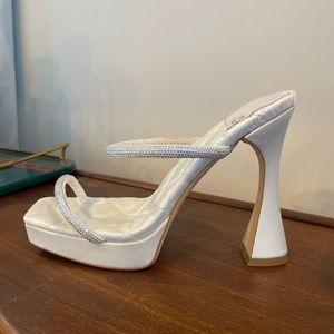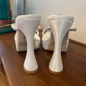 Jeffrey Campbell “Movie” Platform Mule in Satin White and Rhinestones