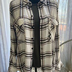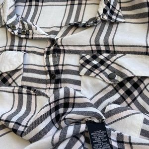 Sanctuary Boyfriend Shirt, Snap-front Pink and Black Plaid on White, Medium