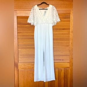 NEW- Tadashi Shoji - BRANSON LACE CAPELET IVORY JUMPSUIT- size 0/2