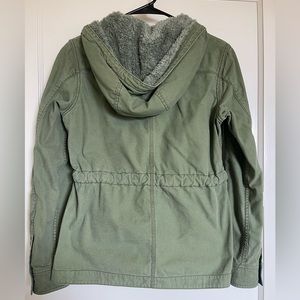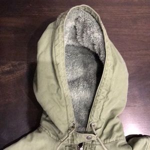 @missamymarie10 hi there, I wanted to pull this out and take some pictures in the daylight. I hadn’t noticed before, but there are a few spots with discoloration. I honestly think I washed it once I purchased off posh - and wore it maybe once. The Sherpa hood is still very fluffy and soft! Please let me know if you have any other questions, I’m open to offers too. :)