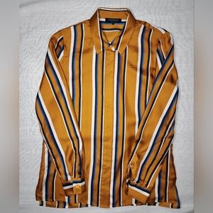 in Gold/White/Blue with button cuffs 100% silk