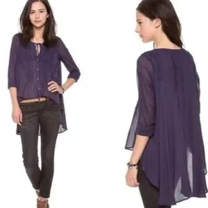 Free People Sisters of the Moon Pleated Button Front High Low Purple Top Size XS