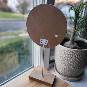 Intentionally distressed print on wood & metal sign with stand