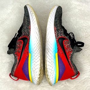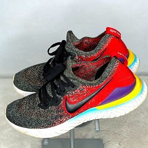 Nike Epic React FlyKnit Women’s 7Y Jade Running Sneaker Shoe. Size 7Y. Lace up pull tabs. Jade University Red. The Nike Epic React Flyknit 2 takes a step up from its predecessor with smooth, lightweight performance and a bold look. An updated Flyknit upper conforms to your foot with a minimal, supportive design. Underfoot, durable Nike React technology defies the odds by being both soft and responsive, for comfort that lasts as long as you can run. Pre-owned: excellent used condition. No rips, tears or stains. Some wear on the soles.