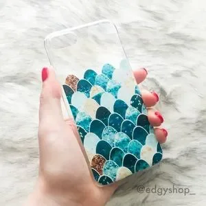 • glossy finish case w/ mermaid scale glitter print design
