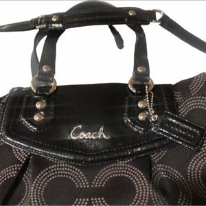 NWOT COACH Purse Satchel W/ 2 Leather Arm Straps & 1 Leather Shoulder Reinforced For Versatility. Designed with inside zipper and multiple pockets. 12” deep x 14” wide. Purse has clean appearance. NOTE: However, purchased received from another Posher. Used to have a Smokey with smell not disclosed. She said it was sage. I can’t smell it any longer.