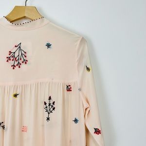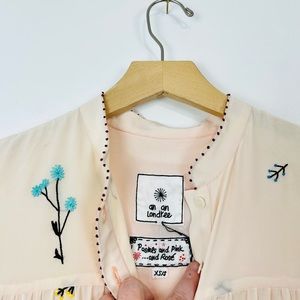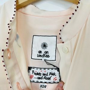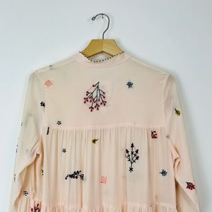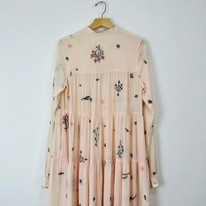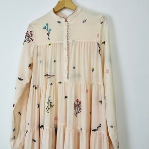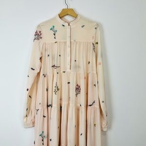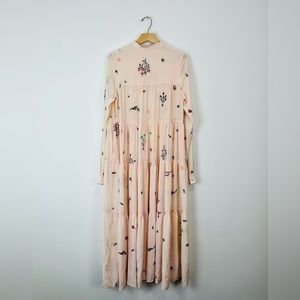 An An Londree Peach Pink Floral Embroidered Tiered 100% Silk Maxi Dress UK S