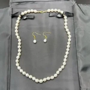 6-7mm Hand Strung Natural Rice Pearl Necklace Earring Set