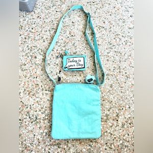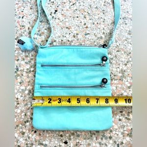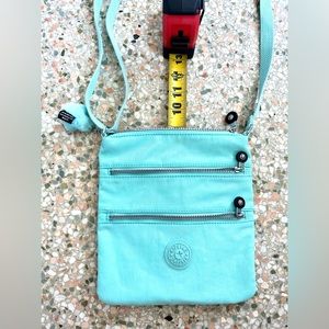 Light turquoise Kipling bag in like new condition. Don’t think my daughter ever used it. Comes with additional coin purse which opens up bigger than it looks with 3 compartments. Measurements shown in pics. I edited the pictures to try to best match the color.