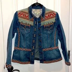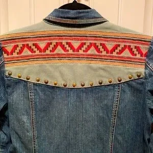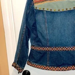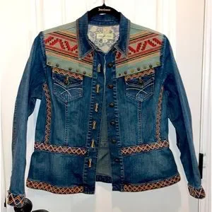 COLDWATER CREEK ( S P ) TRIBAL SOUTHWEST BRASS STUDDED JEAN JACKET BUTTON FRONT