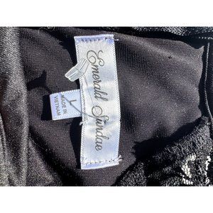 Emerald Sundae Dress Large Black Velour Floral Long Sleeve Mini Junior Womens