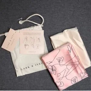 Lark and Ives soft and silky hair scarf set. The set includes two scarves for your hair. One is cream coloured and the one is a light pink. They are brand new with tags and in their packaging.