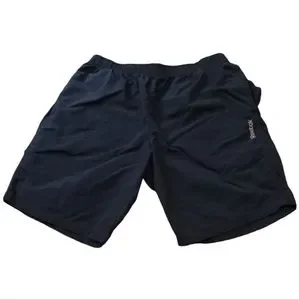 Reebok 100% nylon side, back pocket, elastic, drawstring mens athletic shorts.
