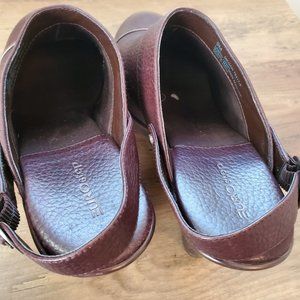 EuroStep Brown Leather Mules Size 9M. Gold details on leather & buckles. Adjustable straps. No box, cross posted, smoke free home