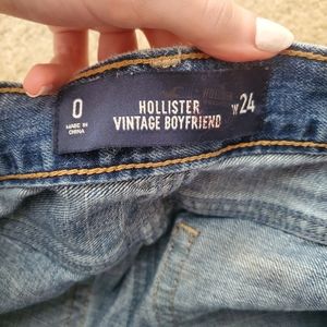 Size 0/24 Hollister distressed vintage boyfriend blue jeans. Has a baggy fit on size 0. Also has a button fly.