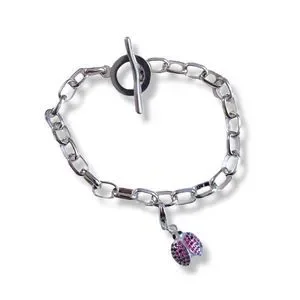 Rhodium Plated 925 Sterling Silver Micro-pavé Round Rhodolite Garnet Ladybug Charm Bracelet 8" If you plan to add lots of charms the 8" gives you the wiggle room you may need for size with your charms. Toggle Clasp Oval Rolo link bracelet. Mix and match the Ladybug it's on a lobster claw clasp, and can be moved to wear just about anywhere. You can add more charms as you like. I have a great selection of high-quality charms, if you bundle you'll get a great deal. The Toggle clasp is easy to put on and take off either wrist. Well-made links will last a lifetime with proper care. The bracelet comes in a protective pouch. Wears well dressed up or casual.
